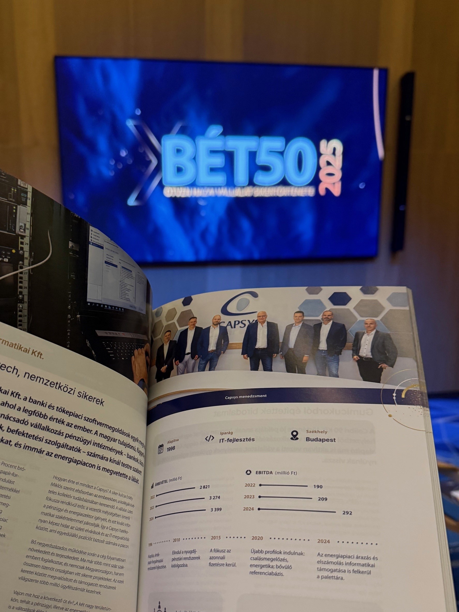 Büszkék vagyunk rá, hogy a Capsys Informatikai Kft. bekerült a Budapesti Értéktőzsde (BÉT) által évente kiválasztott BÉT50 programba, azok közé a dinamikusan fejlődő, innovatív és magyar tulajdonú középvállalatok közé, amelyek már ma is meghatározó szereplői a hazai gazdaságnak, és készen állnak a tőzsdére lépésre.